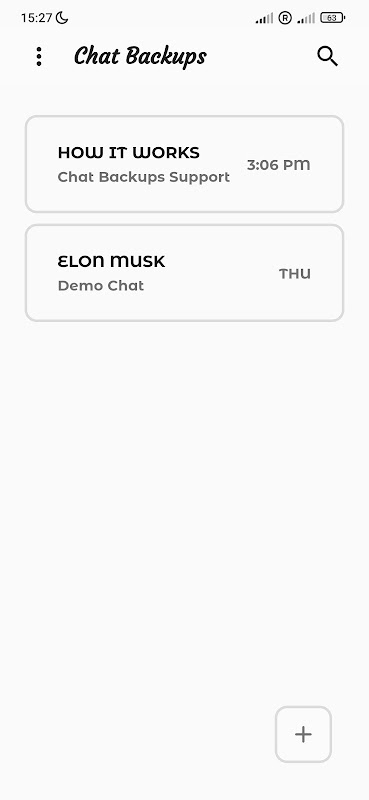 Las copias de seguridad de chat le permiten hacer una copia de seguridad de sus conversaciones de WhatsApp, incluidos los chats privados y grupales. Chat Backups funciona perfectamente además de WhatsApp, puede tener acceso a mensajes sin acceso a la red, ¡pero incluso puede eliminar sus chats originales de WhatsApp para tomar el control de su privacidad!