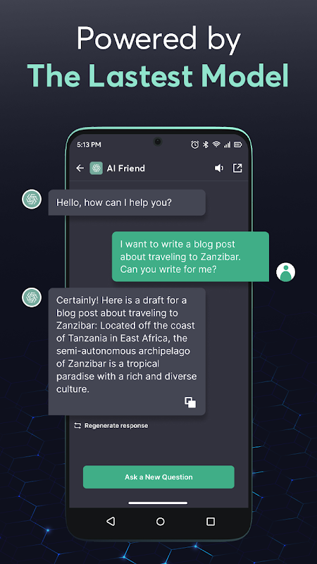 Con ChatAI - AI Assistant, nunca más tendrás que preocuparte por chatbots lentos o inútiles. Sus capacidades avanzadas de chatbot de IA y asistente de escritura están diseñadas para hacer su vida más fácil y eficiente. Ya sea que estés chateando o escribiendo, Open Smart Chat siempre está listo para ayudarte. Pruebe AI Chatbot hoy y compruebe usted mismo cómo AI Open Chat puede llevar su comunicación y creatividad al siguiente nivel.