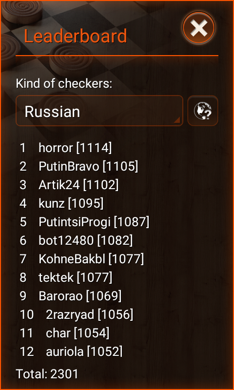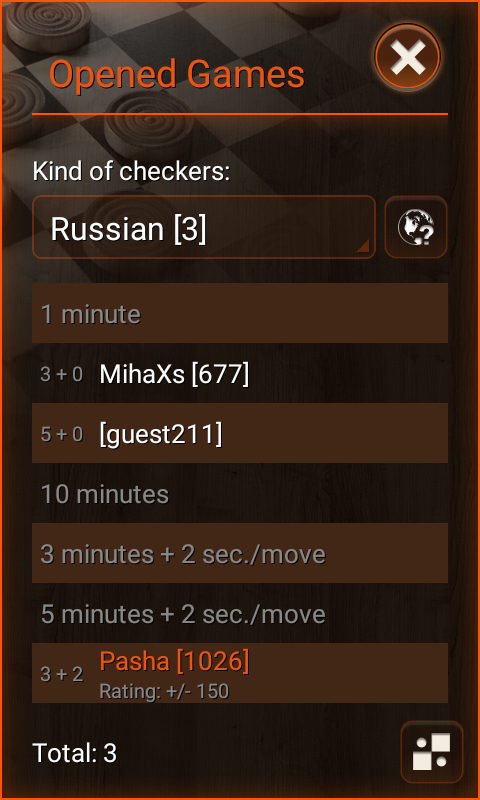 * Tipos de damas compatibles: celular 80, argentina, armenia, brasileña/alemana, canadiense, damas/estadounidense, esquinas (12 damas), esquinas (9 damas), croda, llenas, checas, diagonales, filipinas, góticas, griegas, internacionales/polacas, italianas, jamaicanas, laska, lika, malayas/singapurenses, billar, portuguesas, rusas, españolas, escasas, de Sri Lanka, stavropol, tailandesas, torres y torres turcas
