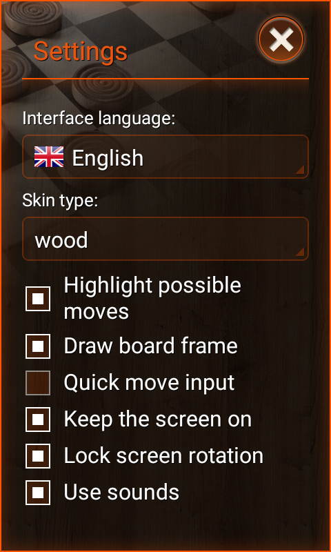 * Hermosa interfaz y varias apariencias de tablero: madera, mármol y cuero