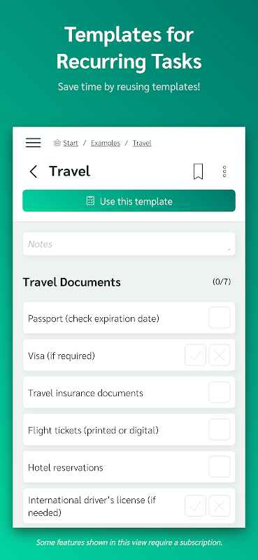 Crea plantillas una vez, genera listas de verificación ilimitadas y mantén todo sincronizado: perfecto para tareas laborales y personales.
