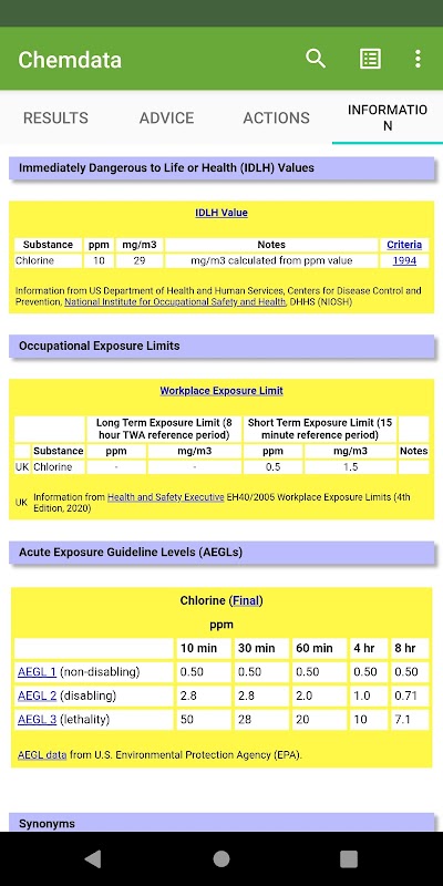 La aplicación gratuita proporciona acceso a un registro completo, para demostrar todas las capacidades del sistema, que se puede encontrar buscando el registro 'Cloro' o el documento número 5. Los suscriptores existentes pueden desbloquear el acceso completo obteniendo una identificación de la organización directamente del NCEC. e iniciar sesión en la cuenta de su organización. Contáctenos por correo electrónico, [email protected] o a través de nuestro sitio web https://www.ricardo.com/chemdata-database