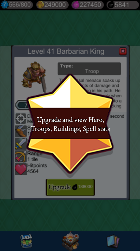 - Detailed Clash of Clans troops, buildings, heroes stats.