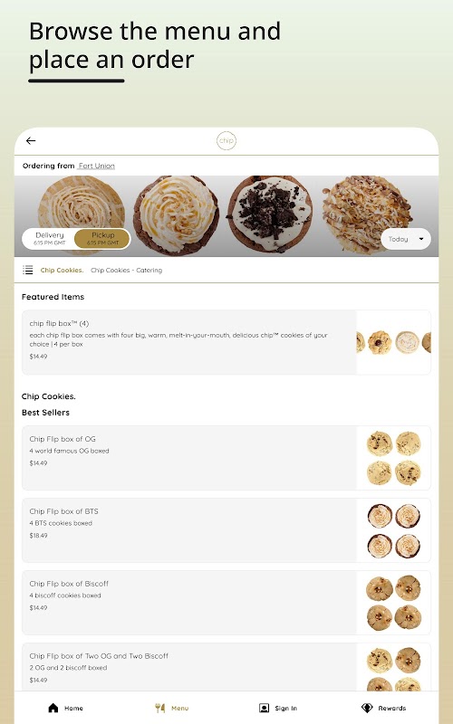 Usa la app de Chip Cookies para encontrar tu restaurante más cercano, ver nuestro menú y hacer un pedido. Ahorra tiempo ordenando con antelación. Gana puntos de fidelidad y sigue el estado de tus recompensas desde la app. ¿Te apetecen galletas? Pide Chip Cookies recién horneadas online para entrega rápida o recogida fácil. Un sabor delicioso y calentito está a solo unos clics.