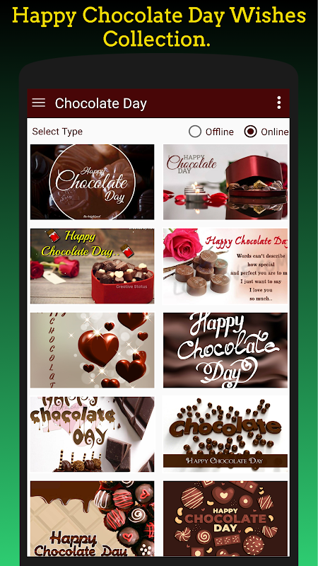 💕 It has a huge collection of chocolate day wishes. it's say is to happy chocolate day by using this app.🍫