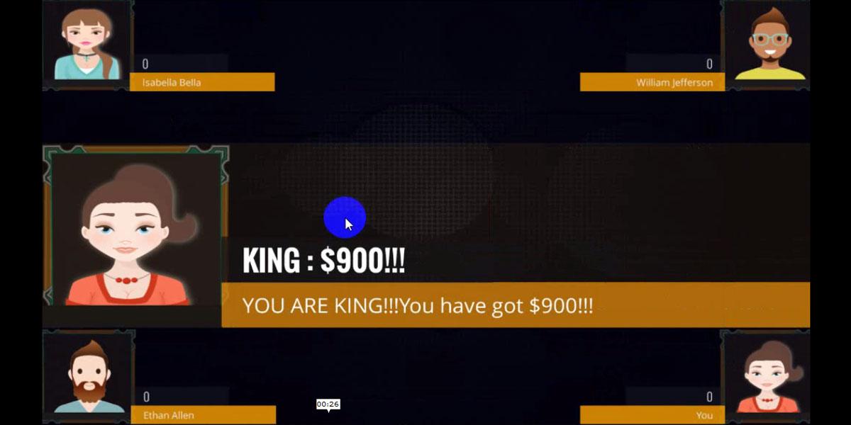 This game have total 10 rounds.After complete 10 rounds then show the total result of 4 players.