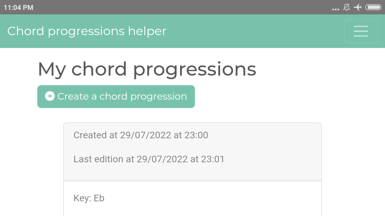 The home screen is a dashboard, allowing you to quickly see all the chord progressions you have created. It is possible to modify or delete them.