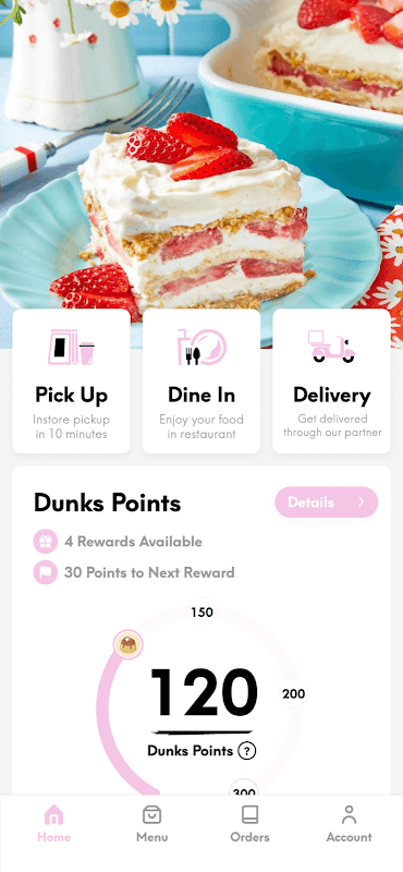 Gane puntos para comida o bebida gratis Recompensas de su elección.