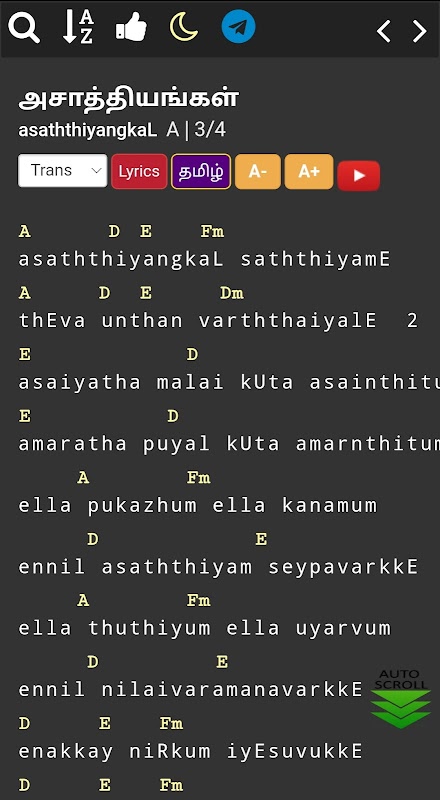 Más de 2200 acordes cristianos tamiles - Transposición - Posiciones de acordes - Transliteración