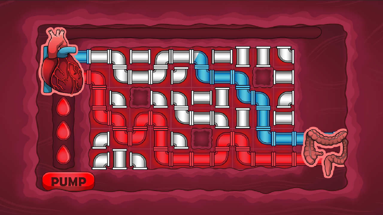 En este juego de rompecabezas de tuberías, debes conectar correctamente el flujo de sangre.