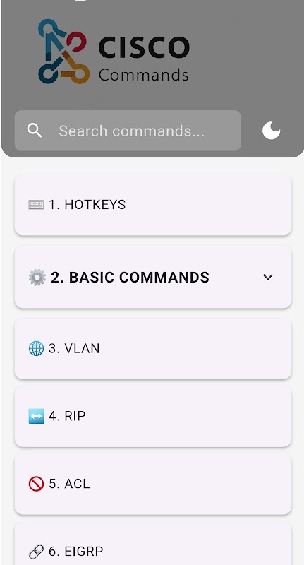 "Cisco Commands" es tu compañero indispensable para dominar la línea de comandos de Cisco. Ya seas estudiante de redes, profesional certificado o simplemente un entusiasta de la tecnología, esta aplicación te brinda acceso rápido y sin conexión a una amplia biblioteca de comandos y conceptos esenciales.