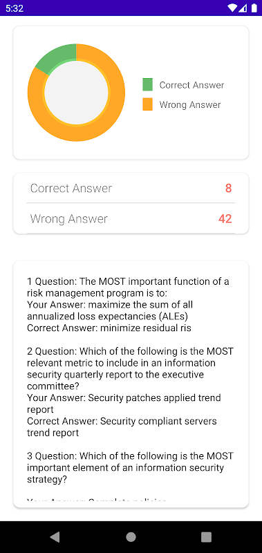 Esta aplicación de preguntas de práctica del examen CISM es un recurso independiente creado por profesionales dedicados para ayudarlo en su viaje de preparación para el examen. No está asociado oficialmente con ISACA ni con ninguna organización de terceros. Las preguntas, explicaciones y contenido de esta aplicación tienen fines educativos y prácticos únicamente. Si bien se ha hecho todo lo posible para garantizar la precisión, recomendamos consultar los materiales de estudio oficiales y las pautas proporcionadas por ISACA para una preparación de exámenes más confiable. Los desarrolladores y creadores de la aplicación renuncian a cualquier responsabilidad por los resultados del uso de esta aplicación para la preparación de exámenes.