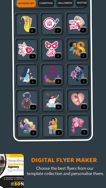 CJ Flyer Poster Maker y All-in-one Poster Creator App, las plantillas incluidas en el software de creación de carteles incluyen, entre otras: