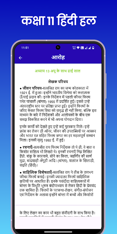 Esta aplicación contiene notas de todos los capítulos incluidos en la solución Libro hindi de clase 11.