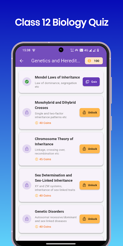 Esta aplicación contiene mcq del cuestionario de biología de clase 12 de la manera más sistemática. Le ayudará en una revisión rápida si le gustó nuestra aplicación. Por favor califícanos.