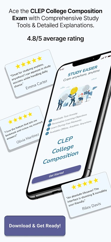 La mejor aplicación para la preparación de composición universitaria CLEP, esta guía de estudio de CLEP te proporciona las herramientas para dominar la preparación para el examen de composición universitaria CLEP y obtener créditos universitarios con facilidad. Ya sea que esté perfeccionando sus habilidades de escritura o afrontando el examen CLEP para acelerar su trayectoria académica, esta aplicación es su mejor compañera.