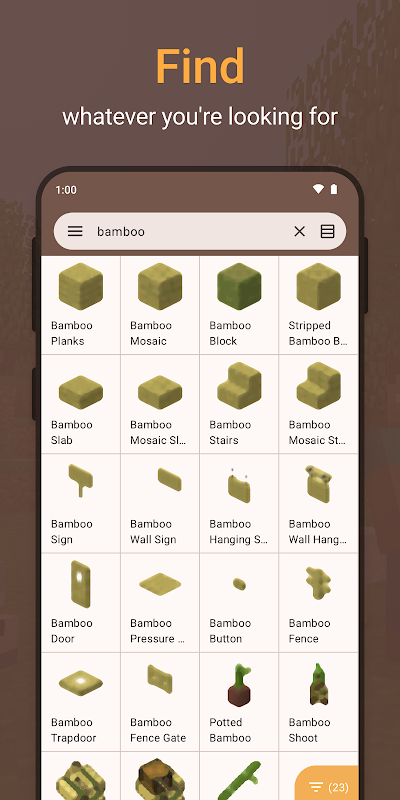 Ofrece acceso rápido a la información de cada bloque, receta y mucho más contenido del famoso juego.