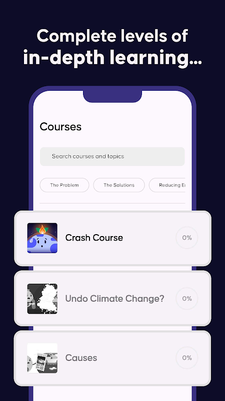 Presentamos la única aplicación de educación climática del mundo. Explore nuestros cursos interactivos y bellamente ilustrados que están diseñados para ser divertidos y fáciles de entender, incluso para quienes no tienen experiencia en ciencias.