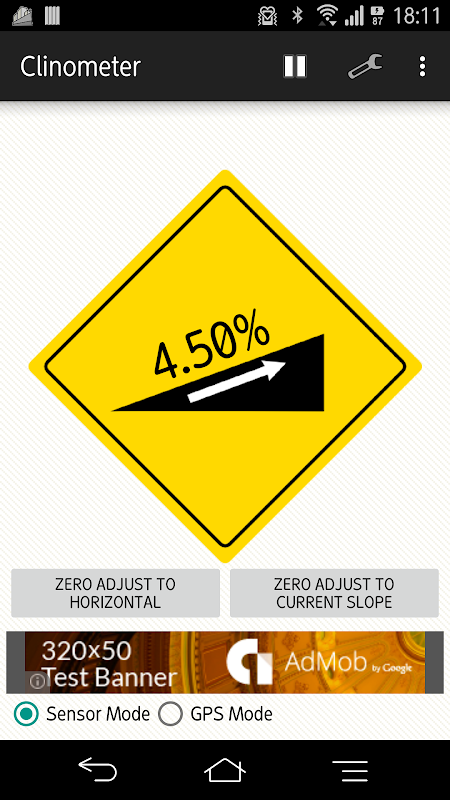 Clinómetro simple Mostrar un ángulo de inclinación como a las señales de tráfico por carretera.