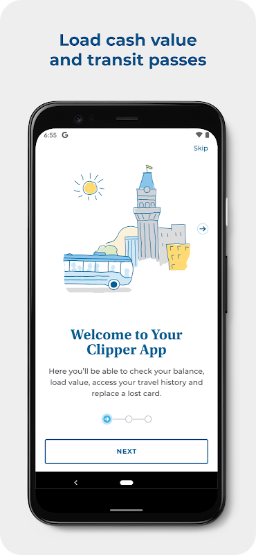 Clipper es la tarjeta de tránsito todo en uno que se utiliza para pagos de tarifas sin contacto en todo el área de la bahía de San Francisco. La nueva aplicación Clipper le permite administrar su cuenta Clipper desde su teléfono: ¡agregue valor, vea su historial y planifique su viaje!