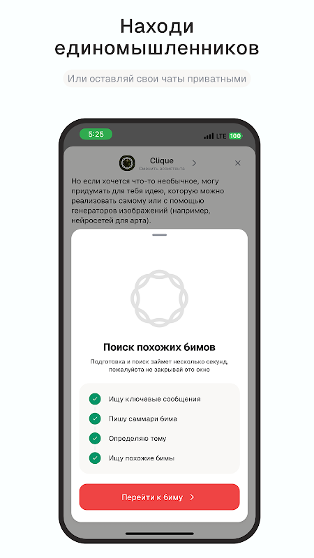 Clique analiza tus intereses y los temas de los que hablas con IA y selecciona a personas con las que tienes algo en común. No se trata de un conocido casual, sino de una oportunidad para encontrar a quienes te entienden. 50 000 usuarios ya han encontrado 900 000 coincidencias, ¡y tú puedes formar parte de esta comunidad!