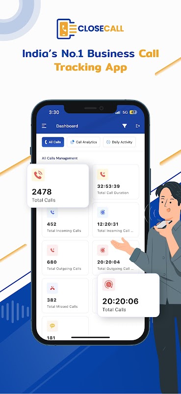 Close Call es un modelo basado en seguimiento de llamadas que está diseñado con el objetivo de monitorear los detalles de las llamadas de su equipo. Es una herramienta de gestión de llamadas predeterminada que le ayudará a analizar los registros de llamadas en detalle y realizar cambios en su enfoque en consecuencia. Puede adquirir conocimientos importantes para mejorar el rendimiento de su negocio y tomar decisiones comerciales importantes. El software cubre llamadas entrantes, llamadas salientes, llamadas perdidas, llamadas rechazadas, llamadas nunca atendidas, historial de llamadas, total de llamadas, horas de trabajo de los empleados y mucho más.