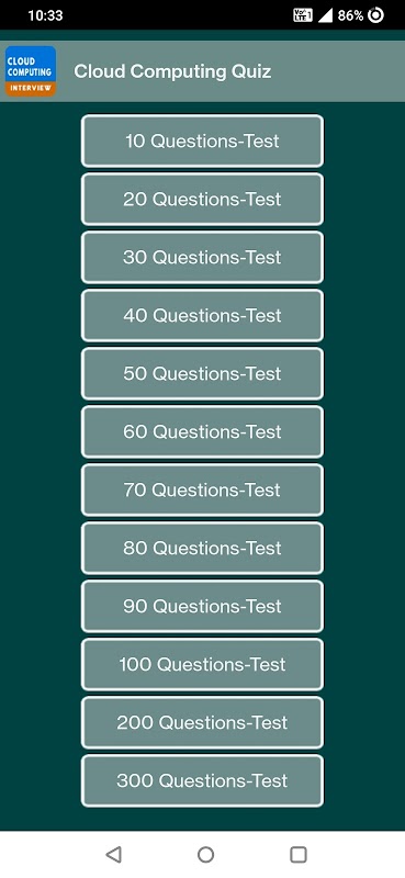 Prueba de Práctica de Cloud Computing Prueba de examen de aplicación gratuita para el examen de Cloud Computing. En la aplicación Cloud Computing Practice Test tener más de 2600 + preguntas de opción múltiple para su éxito de Cloud Computing examen. Cloud Computing Practice Test Free app le ayuda a pasar su trabajo de Cloud Computing Entrevista.