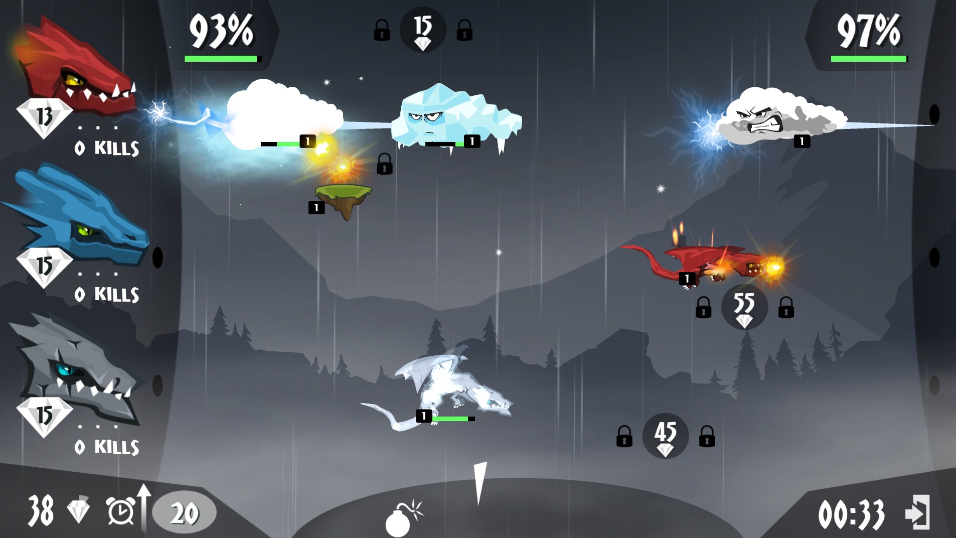 Juego de estrategia en tiempo real de dragones contra nubes