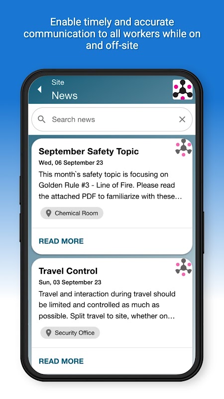 Comunicación en vivo y mensajes SMS a los móviles de sus trabajadores para alertarlos sobre noticias clave del sitio, cambios de Covid, actualizaciones del sitio y oportunidades.