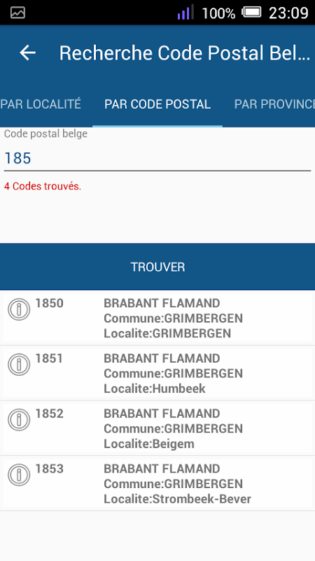 Encuentre un código postal en Bélgica por provincia, ciudad y localidad.