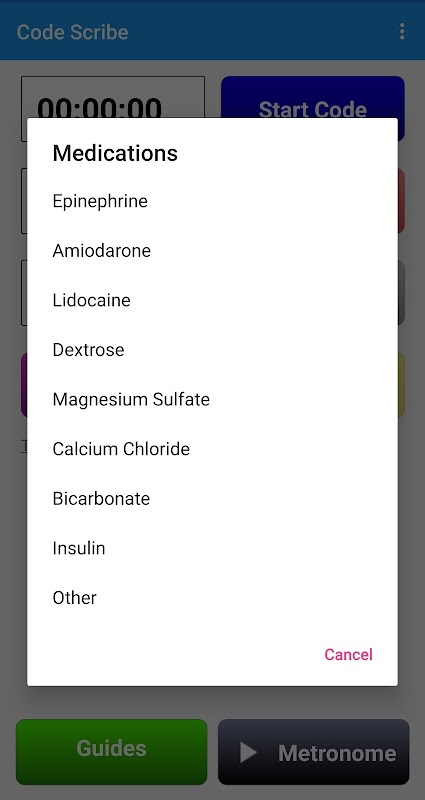 Una aplicación diseñada para ayudar a ejecutar un código azul como líder de equipo o como registrador. Los temporizadores muestran el tiempo entre los ciclos de RCP y los medicamentos. Registre los tiempos de medicación administrada y otros eventos durante un código. Use esta aplicación para ayudar a administrar y documentar códigos de manera más efectiva.