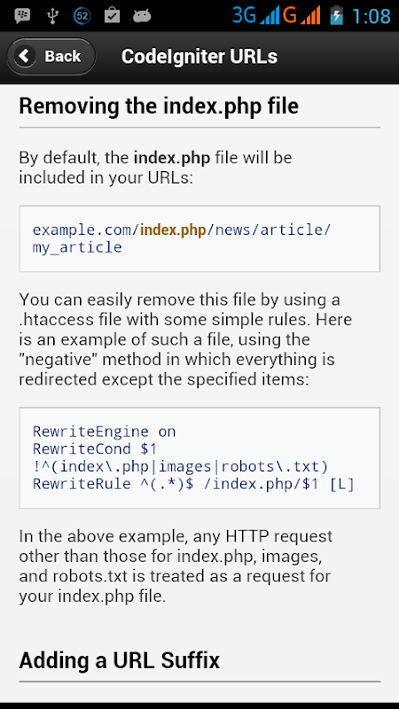 Información de Codeigniter Tutorial APK