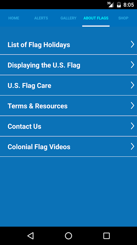 This mobile app provides details on proper flag etiquette and suggested dates to fly the flag. Status and instructions on flying the flag at half staff are also provided. Other useful resources will enhance your flag experience.
