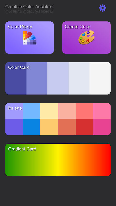 Admite la extracción de colores de imágenes tomadas con la cámara o seleccionadas desde la galería, y la creación de tarjetas de colores o gradientes favoritas.