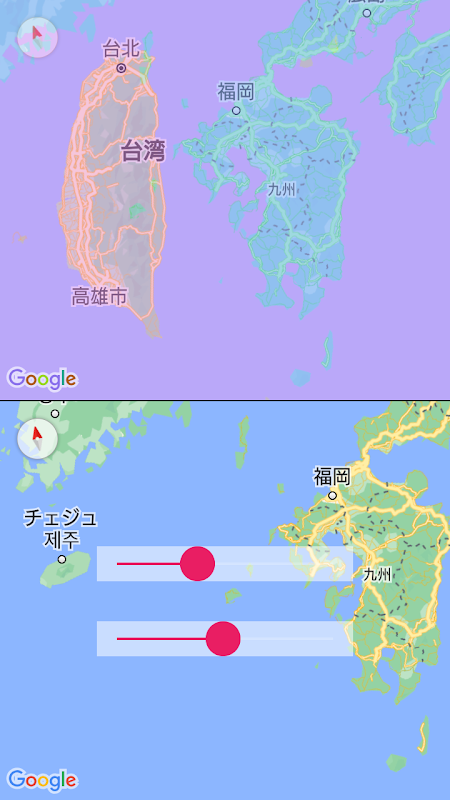 (*Si cambia el tipo de visualización de un mapa en un estado de visualización superpuesto, la visualización del mapa no se reflejará a menos que mueva uno de los mapas aunque sea ligeramente. Esto se debe a que la empresa que proporciona la API del mapa ha cambiado el tipo de visualización del mapa. a una API de JavaScript. Tiene una rutina de devolución de llamada para cambiar el tipo de mapa, pero por alguna razón lo olvidé, o por razones religiosas o intenciones maliciosas, no se ha implementado para Android, por lo que no es posible saber el momento del mapa. cambio de pantalla. Nos disculpamos por las molestias).