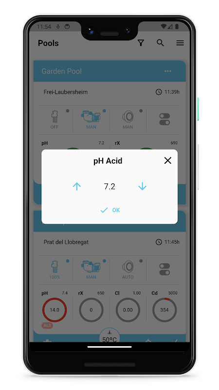 - Visualización de pH, nivel de cloro, etc.