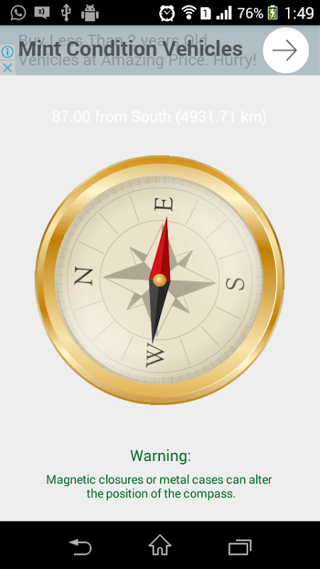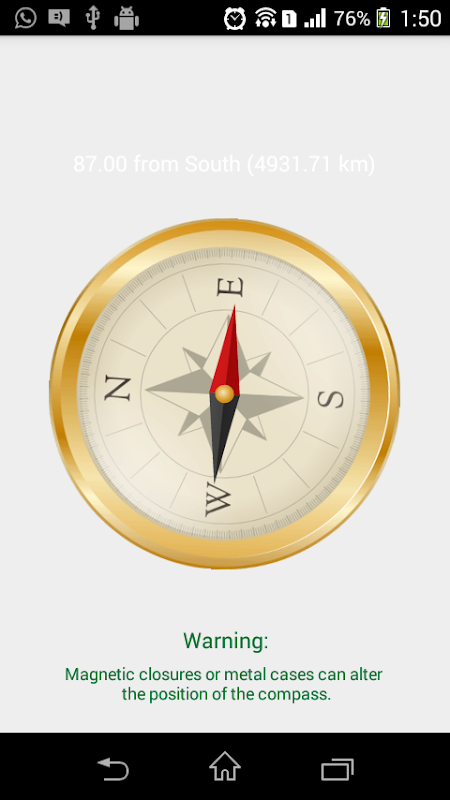 La aplicación brújula depende del rendimiento de su dispositivo con exactitud. Si no es correcto, por favor, compruebe que no está siendo afectado por un campo magnético.