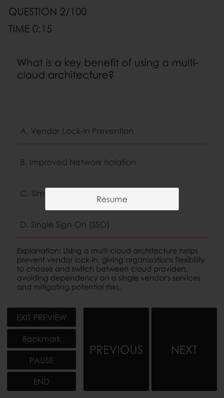 El modo de simulador se crea para replicar el formato de examen real de CompTIA Cloud+ para ayudarle a realizar un examen simulado antes del examen real.