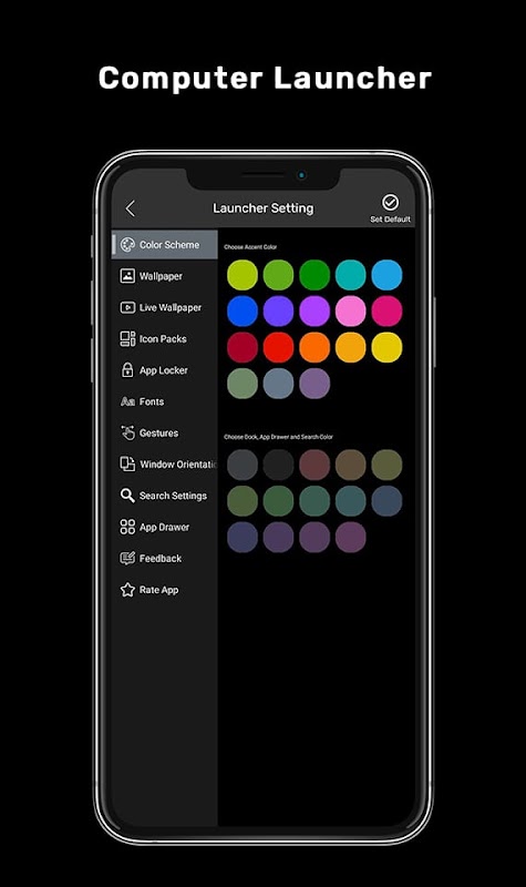 Otra característica notable de Computer Launcher es su soporte para temas. La aplicación viene con una variedad de temas integrados entre los que puede elegir, o puede crear sus propios temas personalizados utilizando el editor de temas integrado de la aplicación. Los temas se pueden personalizar con diferentes fondos de pantalla, íconos y combinaciones de colores para crear una apariencia única para su dispositivo.