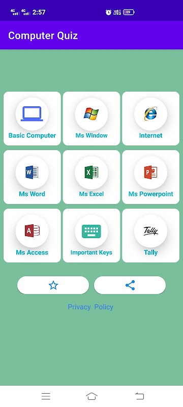 La aplicación Computer Quiz está desarrollada para mejorar su conocimiento de las preguntas y respuestas informáticas (MCQ).