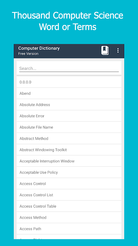 Whatever you are student or professional this free Computer Science dictionary app will help you find clear and accurate definitions right on your phone or tablet
