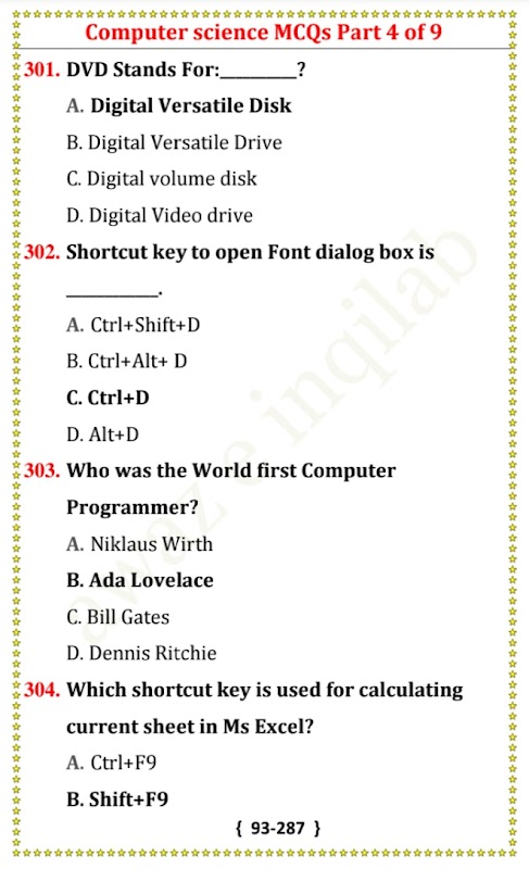 MS Excel, MS Word, MCQ en Internet, MCQ Quiz KPPSc MCQs, MCQ of Computer Science, NTS GAT, Computer se ha convertido en la cosa más demandada en cualquier trabajo. Casi todos los departamentos necesitan computadoras. Y es muy importante conocer los conocimientos básicos de informática. Si desea obtener un trabajo o una admisión relacionada con la informática, debe prepararse en línea para las preguntas y respuestas de MCQ de informática. La mayoría de los conductores de prueba, como FPSC, NTS, KPPSC, PPSC y otros, están agregando MCQ de conocimientos informáticos en su patrón de prueba. Tener un buen comando en la computadora es muy necesario. Aquí hay algunos MCQ relacionados con la computadora, desde el básico hasta el avanzado, que ayudarán a nuestros lectores a obtener calificaciones altas en la parte de computadora de la prueba.