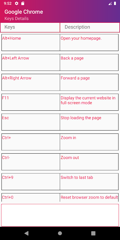 Desbloquee todo el potencial de su software favorito con nuestra completa aplicación de teclas de acceso directo, ¡ahora disponible en Android! Ya sea que sea un profesional experimentado que busca optimizar su flujo de trabajo o un recién llegado ansioso por dominar funciones esenciales, nuestra aplicación está diseñada para ayudarlo a navegar por software popular de manera más eficiente. Acelere sus tareas informáticas, cumpla con plazos ajustados y minimice su dependencia del mouse con nuestra interfaz fácil de usar.