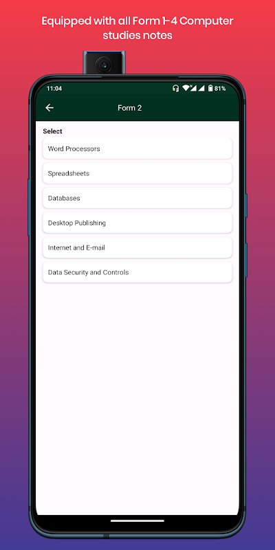 🖥️ Desbloquee el mundo de las computadoras con Computer Studies Form 1-4 Notes, su aplicación todo en uno diseñada para hacer que el aprendizaje de informática sea un viaje educativo y divertido. Sumérgete en el ámbito digital con nuestra amplia gama de recursos:
