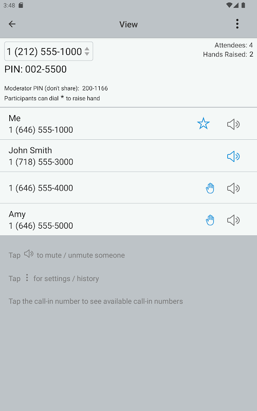 • Los participantes pueden presionar * en su teléfono para levantar la mano (use para identificar a las personas a no silenciar)