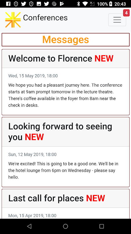 You can also see any messages sent by the conference organisers, with new ones sent as notifications (opt-in).