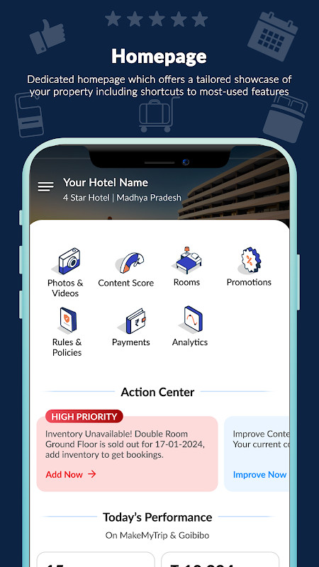 Descarga hoy mismo la app Connect (antes IngoMMT) y registra tu alojamiento en MakeMyTrip. Con la confianza de miles de socios, Connect te ayuda a publicar, gestionar y hacer crecer tu negocio de hostelería fácilmente.