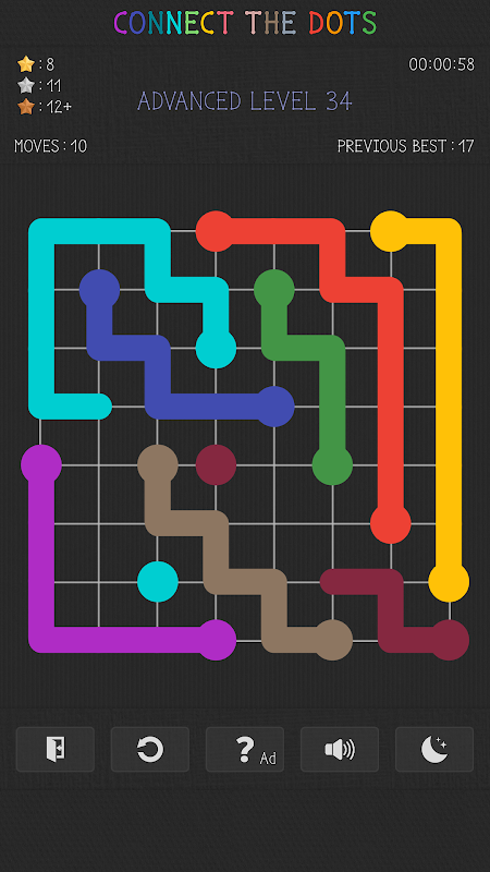 Conecta todos los puntos del mismo color para resolver cada nivel.