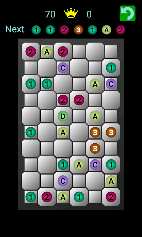 Cuatro bolas vecinas con el mismo número \ letra se fusionarán en una sola bola de número \ letra más grande.