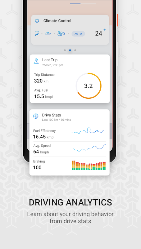 + Evalúe la economía de combustible, el frenado y la velocidad promedio de su vehículo durante los últimos 60 minutos de conducción con la ayuda de gráficos y datos intuitivos
